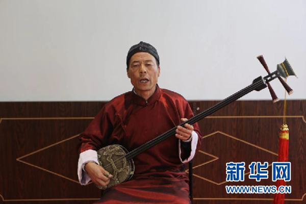 這是涼州賢孝的演奏樂器三弦。新華社記者 耿馨寧 攝