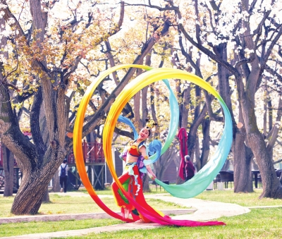 在百年梨樹下翩翩起舞的敦煌飛天“仙女” 張建平 攝