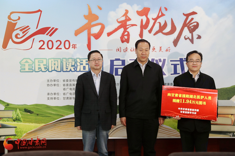 啟動儀式上,省委宣傳部副部長、省新聞出版(版權)局局長王成勇宣布2020年“書香隴原”全民閱讀活動正式啟動。省委宣傳部聯(lián)合讀者集團新華書店飛天傳媒股份有限公司通過省衛(wèi)生健康委,向全省796名支援湖北醫(yī)護人員贈送了價值11.94萬元的圖書。省內(nèi)10家出版社的相關負責人通過中國甘肅網(wǎng)現(xiàn)場直播為現(xiàn)場嘉賓、廣大網(wǎng)友推介優(yōu)秀甘版圖書。