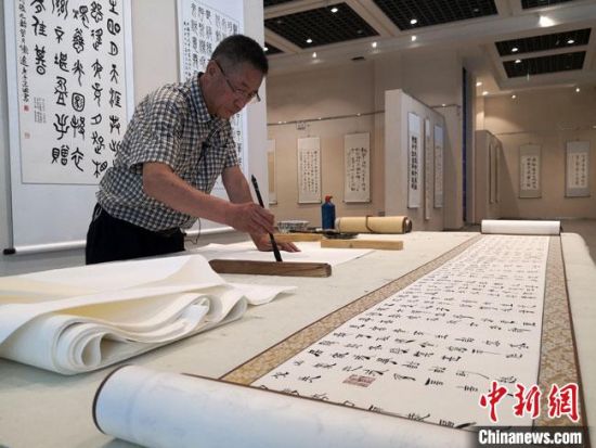 中新網(wǎng)蘭州9月22日電 (馮志軍 高瑩 閆姣)30多年前,因參與發(fā)現(xiàn)位于甘肅河西走廊大漠戈壁“深閨”中的懸泉置遺址,現(xiàn)場(chǎng)出土大量珍貴的簡(jiǎn)牘,令現(xiàn)任敦煌市文化館美術(shù)室主任、敦煌市美術(shù)館展覽部主任朱群魂?duì)繅?mèng)繞了很多年。而此后,當(dāng)時(shí)出土簡(jiǎn)牘上的漢簡(jiǎn)書體,成為他研究、傳承和弘揚(yáng)的事業(yè)。