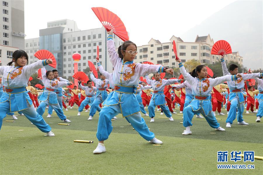 11月4日,蘭州市寧興小學(xué)學(xué)生在活動現(xiàn)場表演武術(shù)操。新華社記者 張智敏 攝