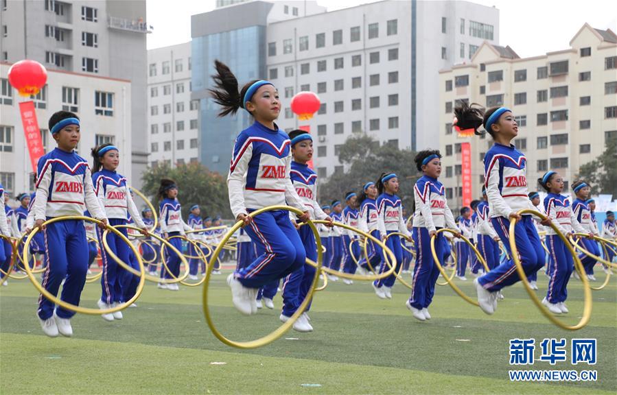 11月4日,蘭州市鹽場堡小學(xué)學(xué)生在活動現(xiàn)場展示呼啦圈操。新華社記者 張智敏 攝