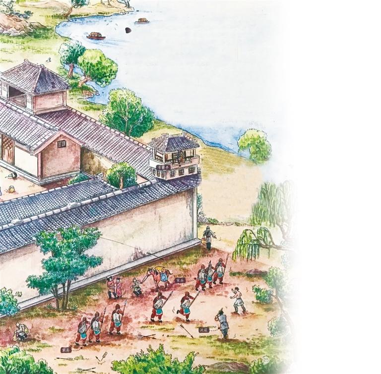 我們中國的塢堡是這樣的:樓院基本呈正方形,院中央高高矗立著五層閣樓,每層都四面出檐。與塔一樣,也是由下至上層遞縮小,但怎樣都不會收縮成歐式的尖頂。中央有閣樓,圍墻四角有角樓,無論閣樓與角樓,都設(shè)有透窗,以便對外瞭望,或在必要時發(fā)射弩箭。莊院四周設(shè)圍墻,正面開門,門兩旁辟窗,裝菱格型窗柩。正門之上建兩層門樓,院內(nèi)除正面外均建有夾墻,門樓與角樓間以飛棧通連,飛棧有護(hù)墻,呈槽型,可供防守人員安全往來。