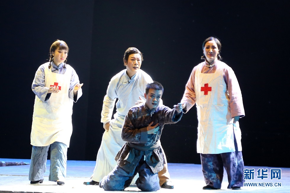 5月30日晚,大型秦腔現(xiàn)代戲《肝膽祁連》在蘭州音樂(lè)廳精彩上演?!陡文懫钸B》以真實(shí)的歷史故事改編,講述了愛(ài)國(guó)民主人士高金城營(yíng)救紅西路軍戰(zhàn)士的感人故事。新華網(wǎng)發(fā)(王晶晶 攝)