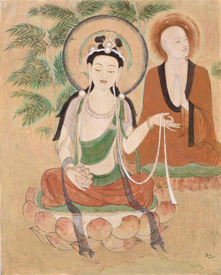 甘肅省知名藝術(shù)家梁宗孟創(chuàng)作的《眾生相》《舞者》,敦煌美術(shù)研究所所長、敦煌壁畫臨摹專家高山創(chuàng)作的《聽法菩薩與比丘(初唐)修正臨摹》,清華大學(xué)吳冠中藝術(shù)研究中心研究員、甘肅省博物館研究員梁雄德創(chuàng)作的《蘇公塔》《佛陀和佛菩薩》等5幅油畫精品,向西方藝術(shù)界展示了甘肅省藝術(shù)家在當(dāng)代繪畫領(lǐng)域的成就。