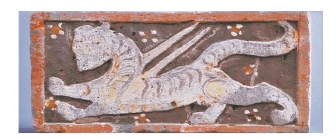 包括“西晉白虎雕刻彩繪磚”在內(nèi)的敦煌彩繪磚雕是中國古代圖像史學(xué)研究彌足珍貴的資料。從藝術(shù)史的源流來講,這些藝術(shù)創(chuàng)作無疑是敦煌莫高窟壁畫和彩塑藝術(shù)的先聲。