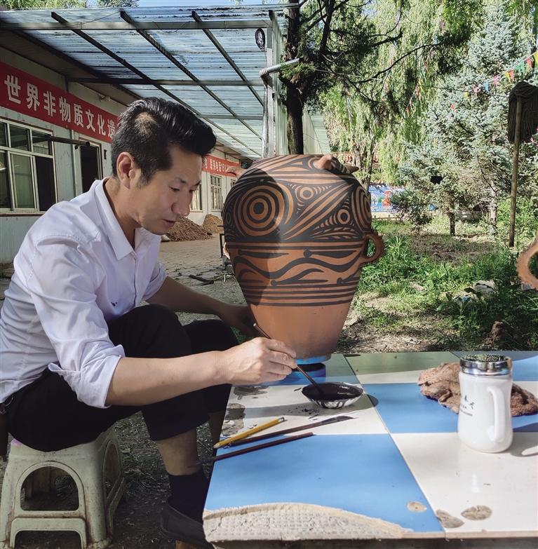 彩陶蘊含著神秘而古樸的遠古文化,其精巧的技藝更蘊含著古人類的智慧和創(chuàng)造力,包含著獨特的文化記憶和民族情感。馬黑麥用自己的方式“復原”了古人的勞動方式和審美情趣,并在此基礎上進行了創(chuàng)新和延續(xù),他以非遺傳承人的身份為己任,追根溯源,不斷探索,將彩陶文化的資源優(yōu)勢轉化為促進經(jīng)濟發(fā)展的產(chǎn)業(yè)優(yōu)勢和經(jīng)濟優(yōu)勢,在國家大力倡導和發(fā)展文化產(chǎn)業(yè)的背景下走出了一條可持續(xù)發(fā)展的道路。2021年12月23日,馬黑麥被當?shù)卣谟?ldquo;提名河洲工匠”獎,對此殊榮馬黑麥感到榮幸的同時又深感責任重大,就像他說的:“彩陶傾注了我對家鄉(xiāng)的感情,我會繼續(xù)努力將彩陶技藝和文化發(fā)揚和傳承下去,相信我們非遺傳承人的路會越走越寬廣。”