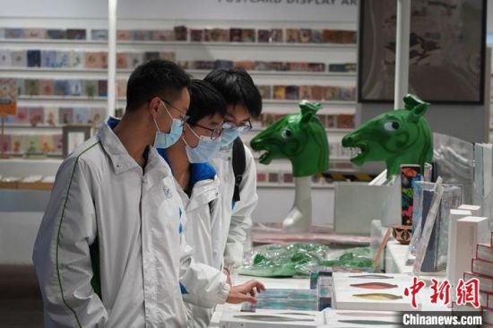 1月14日,在甘肅省博物館文創(chuàng)中心的以銅奔馬為主題的文創(chuàng)產(chǎn)品吸引人們駐足觀看。九美旦增 攝