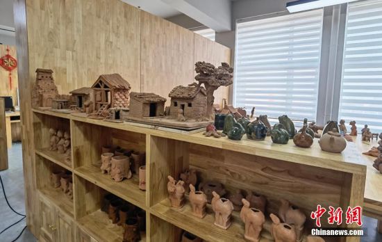 圖為泥塑作品展現(xiàn)人們娛樂場景。 劉玉桃 攝