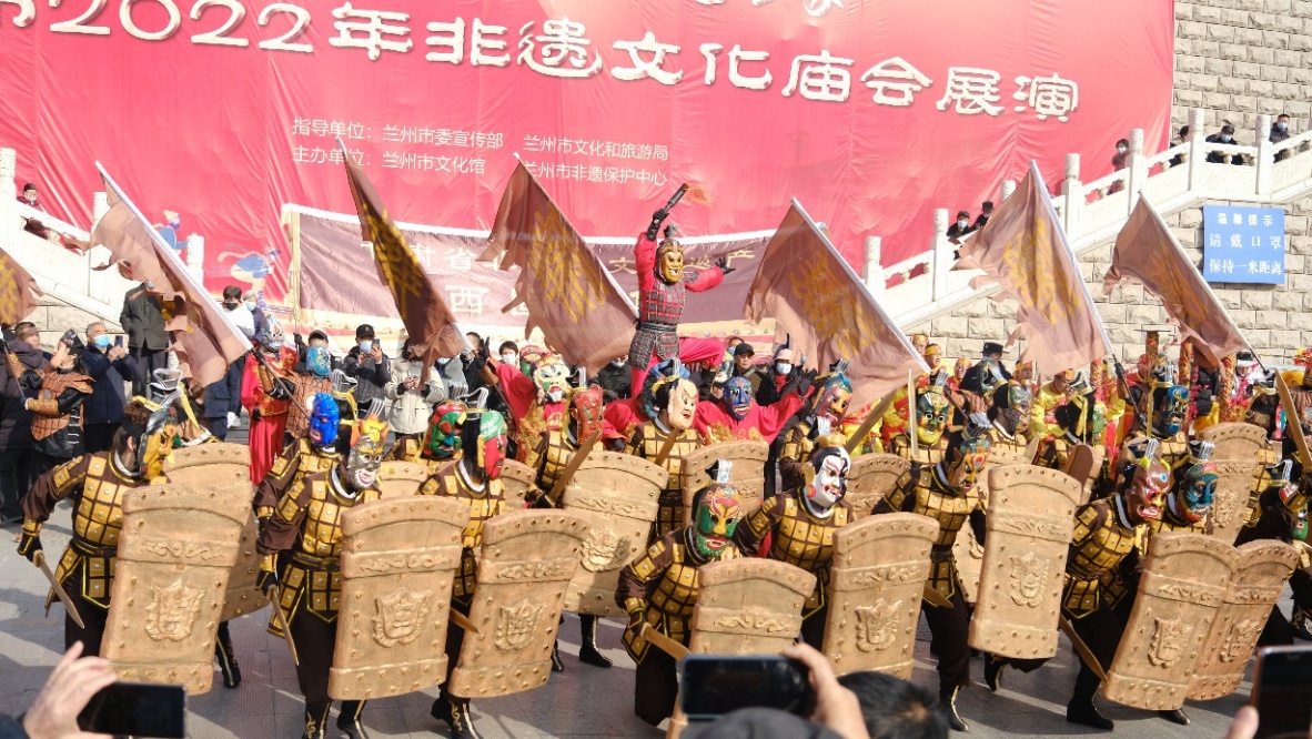 2月2日, 大年初二,“冬奧過(guò)大年·文化進(jìn)萬(wàn)家”蘭州市2022年非遺文化畝會(huì)展演活動(dòng)在甘肅省蘭州市城關(guān)區(qū)金城關(guān)舉行。