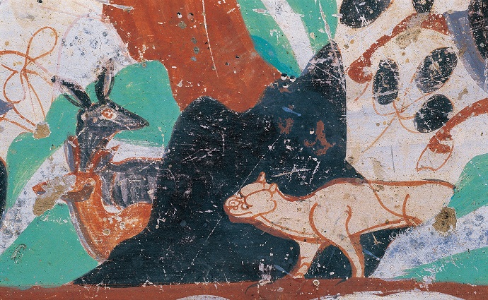莫高窟第296窟的虎與鹿(敦煌研究院供圖)