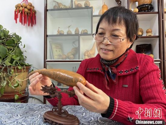 2月15日,蘭州市非遺傳承人陳兵在工作室展示自己雕刻的微雕作品,她擅長(zhǎng)在雞蛋大小的葫蘆上雕刻敦煌壁畫、敦煌飛天,以及佛教經(jīng)文,一把刻刀上下翻飛之后,雕刻形象神態(tài)逼真。