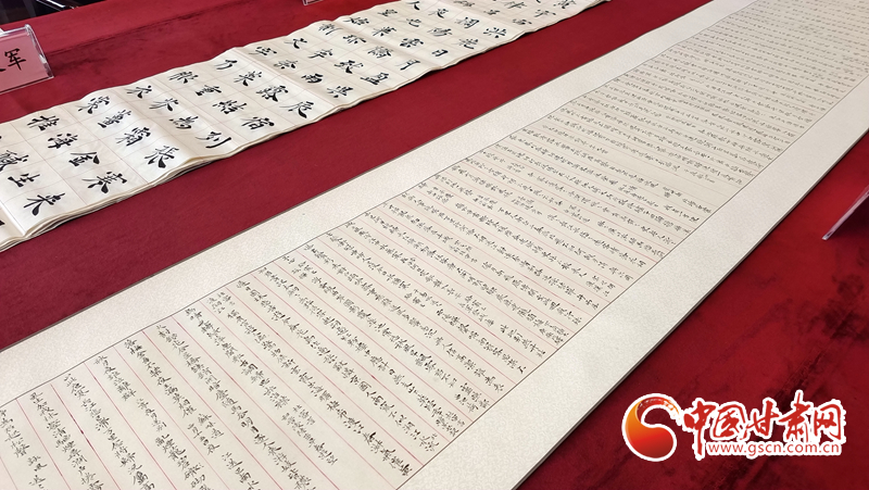 此次捐贈(zèng)的書法精品,有歷時(shí)4年為2008年北京奧運(yùn)會(huì)創(chuàng)作的2008首唐詩(shī)百米長(zhǎng)卷,有近10年創(chuàng)作的毛澤東詩(shī)詞全集書法作品等、著名文章,包括大楷、小楷、草書等,共計(jì)50萬(wàn)余字,將由省博物館永久收藏。