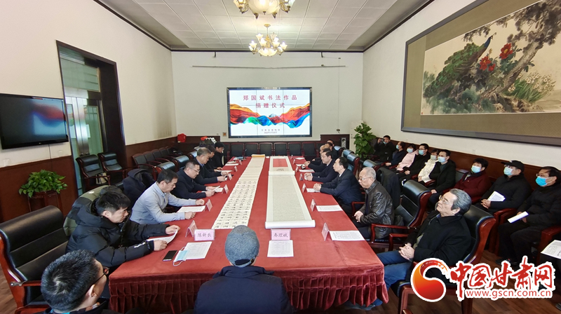 中國(guó)甘肅網(wǎng)2月22日訊(本網(wǎng)記者 任磊 楊顏如)22日上午,鄭國(guó)斌書法作品捐贈(zèng)儀式在甘肅省博物館舉行,鄭國(guó)斌先生向省博物館捐贈(zèng)了近20年來(lái)創(chuàng)作的10件書法精品。