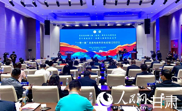 第五屆絲綢之路(敦煌)國(guó)際文化博覽會(huì)“一帶一路”交流與合作文化論壇(2021)在敦煌國(guó)際會(huì)展中心舉行。人民網(wǎng) 王文嘉攝