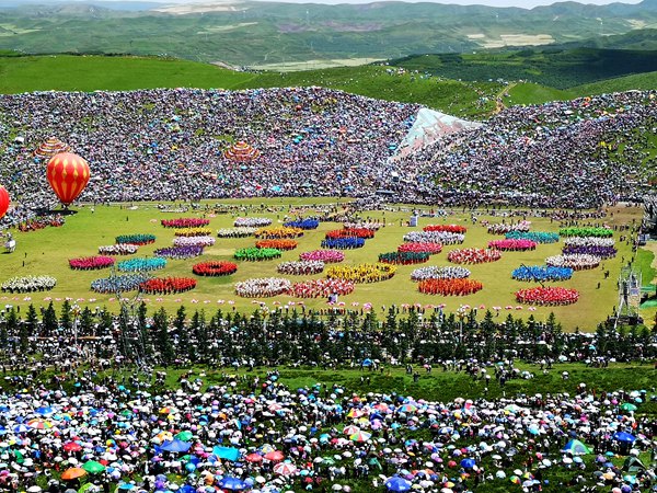 2019年7月30日,在甘肅甘南舉辦的“一會(huì)一節(jié)”吸引近20萬名當(dāng)?shù)厝罕姾陀慰陀^看。甘肅省文旅廳供圖