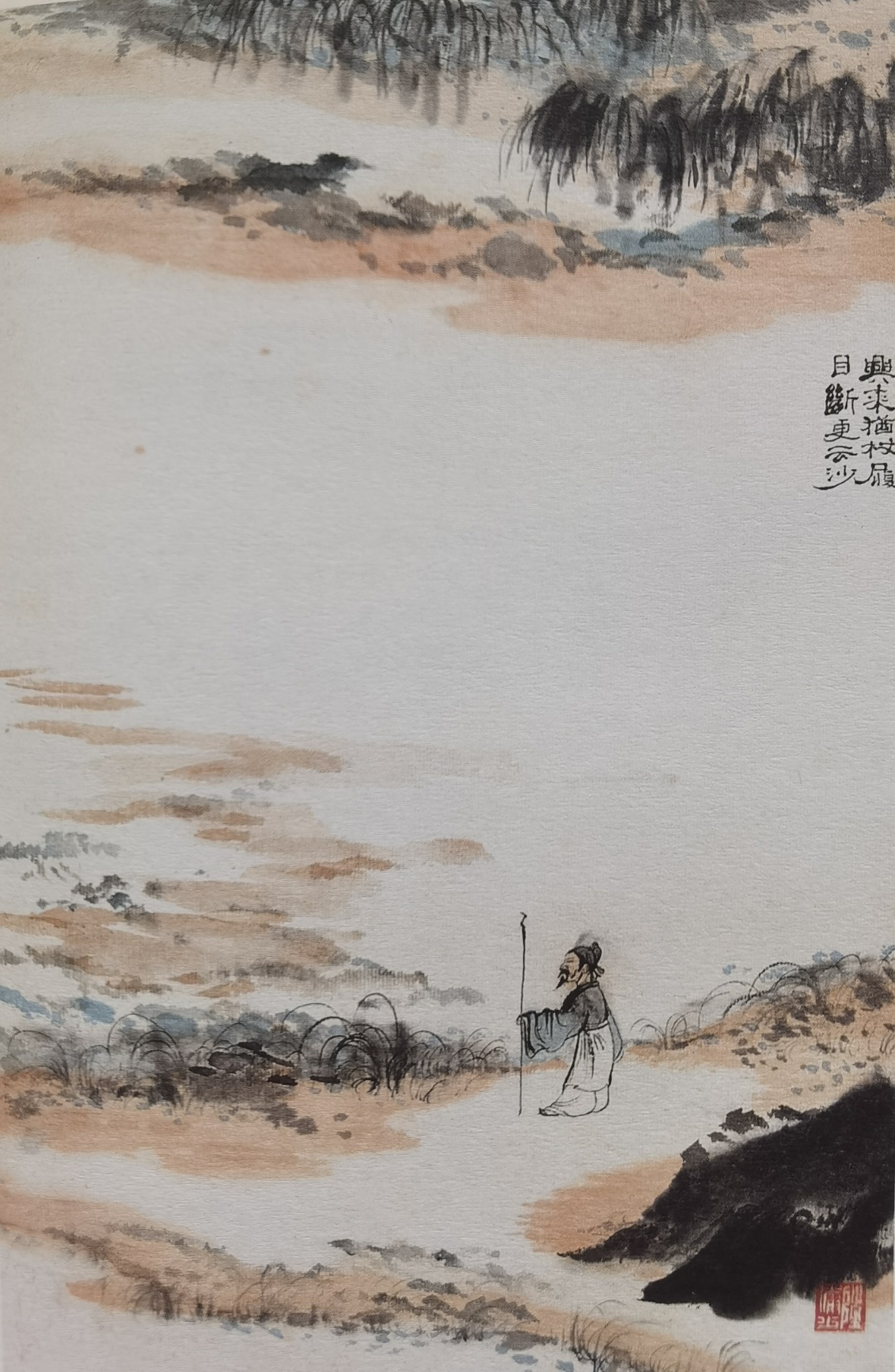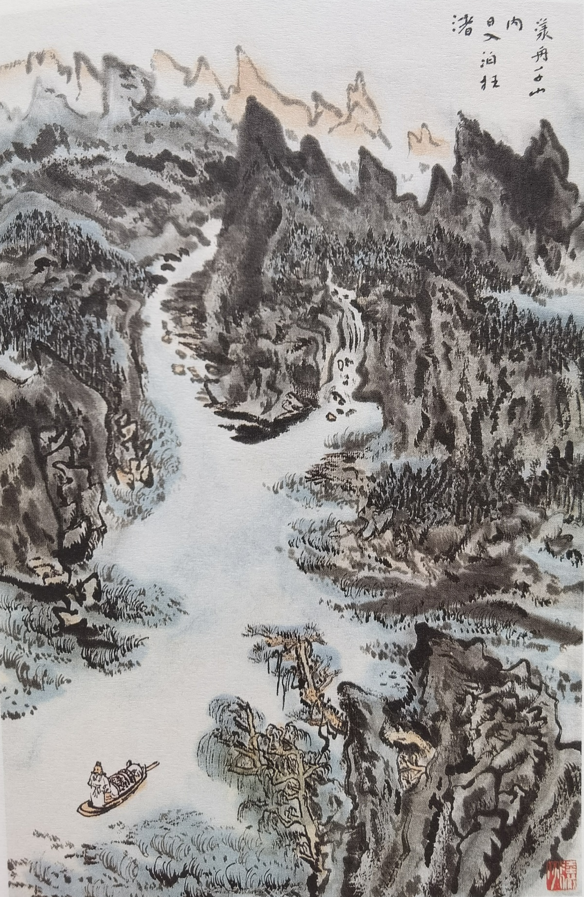 圖:陸儼少《杜甫詩(shī)意圖冊(cè)》之《漾舟千山內(nèi),日入泊枉渚》