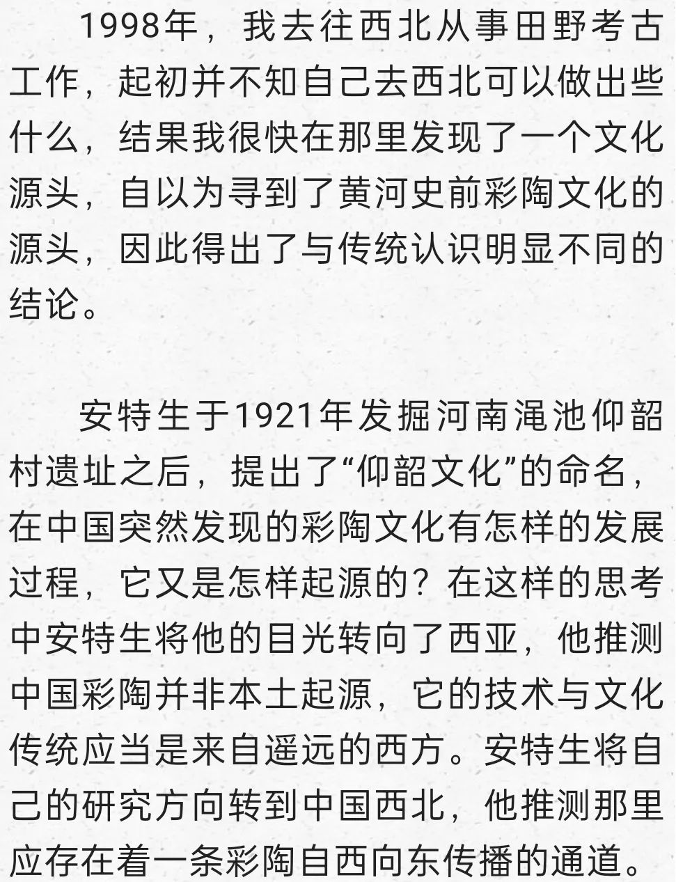 在這里明確提出到甘青尋找仰韶文化的正源,后來我又寫成《秦安大地灣遺址彩陶研究》,討論甘青彩陶的序列,也表達(dá)了類似觀點(diǎn):“甘肅及青海東部地區(qū)在距今6000年前左右,就已經(jīng)是仰韶文化的分布區(qū)域,馬家窯文化彩陶的來源應(yīng)當(dāng)就在這個(gè)本土區(qū)域,應(yīng)當(dāng)就是仰韶時(shí)期的廟底溝文化。從文化的分布與地層堆積關(guān)系找到了甘肅地區(qū)考古學(xué)文化明確的傳承關(guān)系,由彩陶紋飾演變的考察也能尋找到傳承的脈絡(luò)”。