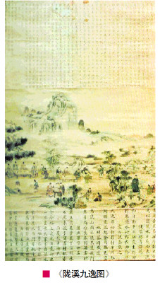“隴溪九逸”每逢集會,必懸此圖。他們繼承中國文人優(yōu)良的傳統(tǒng)美德,“居廟堂之高則憂其民,處江湖之遠則憂其君”,看似醉情山水,實則壯心不已,制訂鄉(xiāng)約,設館授徒,為家鄉(xiāng)的文化教育事業(yè)發(fā)揮著余熱。從這個意義上說,明代秦安“隴溪九逸”正是古代知識分子憂國憂民的一個縮影,亦是那個時代的一抹春色。