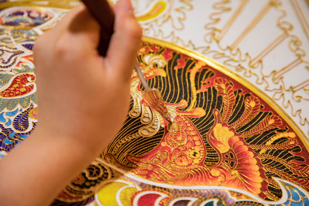 此后30多年,李海明不斷傳承創(chuàng)新,將排絲、壘絲、螺旋絲、柱狀絲等鑲嵌技法引入掐絲琺瑯?biāo)囆g(shù),利用100多種基礎(chǔ)琺瑯釉料調(diào)制出4000多種過渡色及配色,攻克了琺瑯壁畫釉料脫落的難題,提升了琺瑯壁畫作品的藝術(shù)價(jià)值和收藏價(jià)值。截至目前,他共創(chuàng)作2000多幅掐絲琺瑯壁畫作品,先后30多次獲國家級(jí)和省級(jí)工藝美術(shù)類大賽金獎(jiǎng),部分作品被國家博物館收藏。