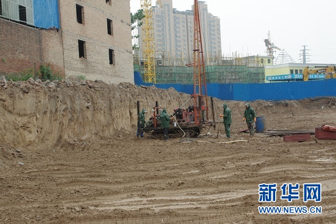 研究團隊在三門峽盆地打鉆獲取巖芯檔案。 受訪者供圖