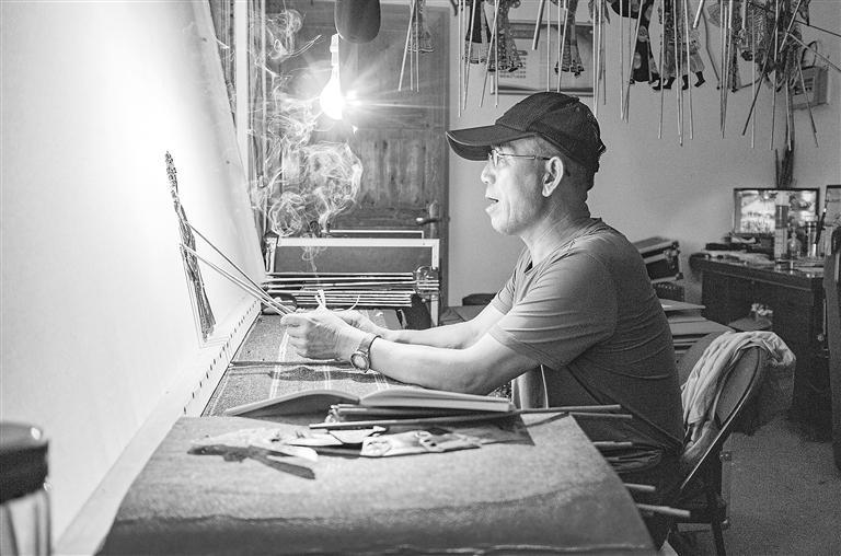初秋,環(huán)江岸邊皮影戲苑里,藝術家們挑桿表演,坐唱念白,粗獷高亢,獨具風格。鼓樂飛揚,上下翻騰的一個個“皮影”,動作或豐富激烈,或輕柔舒緩,不時博得觀眾的掌聲。