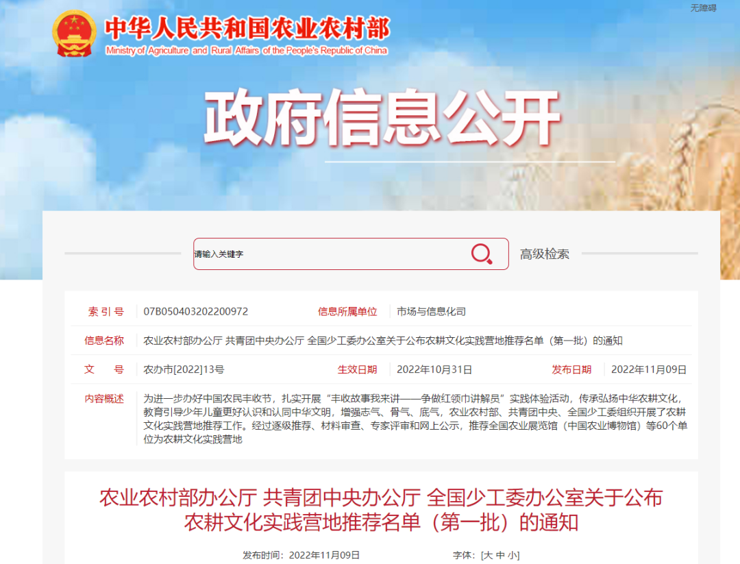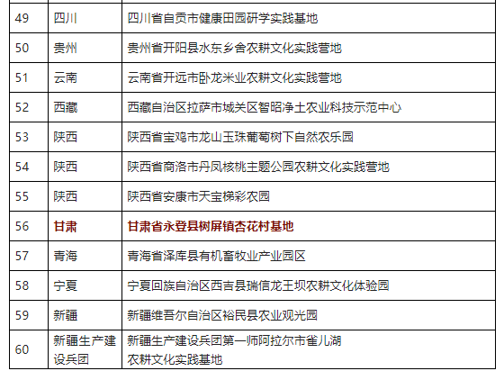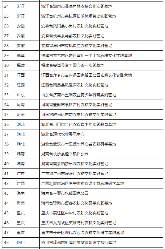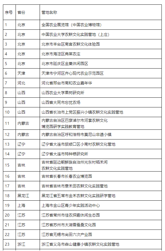 農(nóng)耕文化實(shí)踐營地推薦名單(第一批)