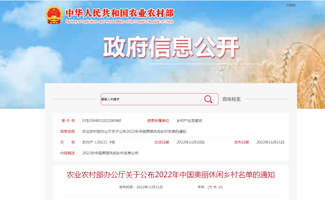 經(jīng)各省遴選推薦、專家評審和網(wǎng)上公示,推介北京市門頭溝區(qū)妙峰山鎮(zhèn)炭廠村等255個鄉(xiāng)村為2022年中國美麗休閑鄉(xiāng)村,其中農(nóng)家樂特色村84家。其中甘肅6個(農(nóng)家樂特色村用*號標注):