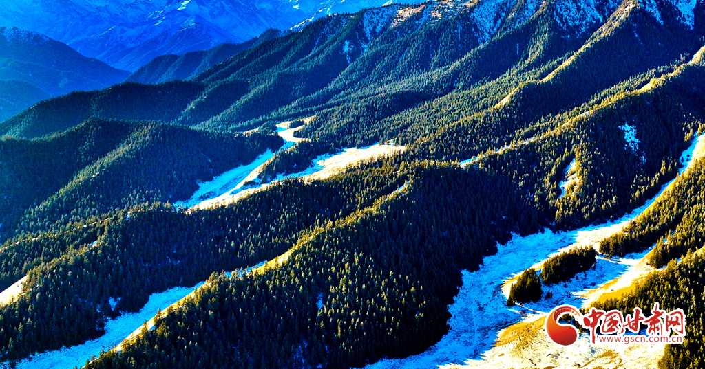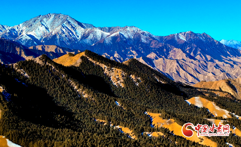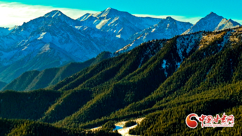 1月21日,雪后的祁連山國家公園甘肅省張掖段肅南片區(qū),遠處的巍峨祁連山脈被皚皚白雪層層包裹,蒼松翠柏,浴雪草原,一派山舞銀蛇的壯美北國風(fēng)光。