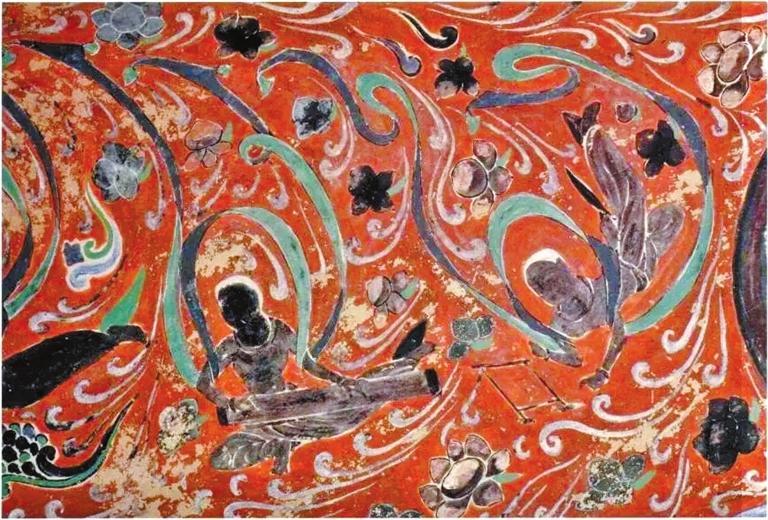 公元421一433年間,北涼占據(jù)了敦煌,莫高窟也第一次正式開始大規(guī)模的營造。這次營造活動的內(nèi)容,包括268、272窟的改建和275窟的新建,以及三個洞窟按各自的功能統(tǒng)一計劃和安排繪制了壁畫和塑像。這樣,莫高窟崖壁上首次出現(xiàn)了一組可供僧侶們禪修、朝拜與進(jìn)行大眾佛教活動的獨具特色而又有一定規(guī)模的佛教建筑。整體北朝時期,莫高窟所營造的洞窟,在崖面上以十六國時代的三個洞窟為中心向南北兩邊擴(kuò)展延伸,南面接268窟向南至246窟,其中256窟為后代擴(kuò)建;北面接275窟向北,分上下兩層,上層從454窟周圍開始至428窟,下層285窟開始至305窟(該層為現(xiàn)存崖面上的一介夾層,北至321窟,南至65窟)。這三條線上的洞窟加起來共有50多座。另外,這些洞窟都是懸空開鑿。當(dāng)時,莫高窟曾有過在崖面的最底層營造洞窟的嘗試。例如487、488、489諸窟與北涼、北魏窟在同一垂直面上,低于現(xiàn)在的地面五米左右,洞窟地面可能與當(dāng)時的大泉河床底面平行,因其無法解除洪水和積冰給其帶來的危害,不久這些洞窟被廢棄不用,以后也未曾再于這一平面營造過洞窟。隋代的莫高窟崖面,是在先代窟群崖面的基礎(chǔ)上向南北兩頭拓展。當(dāng)時莫高窟崖面上的洞窟是上下兩層,上層248窟至428窟一段,下層285窟至305窟一段。隋代開始,上層接428窟向北,營造了427窟至376窟一段,接248窟向南營建了246、244、242諸窟;下層即現(xiàn)在崖面上的夾層,接305窟向北營造了306窟至317窟一段,接285窟向南修建了282窟至64窟一段。經(jīng)過隋代的營造,莫高窟窟群崖面已較完整而又頗具規(guī)模,上下兩層洞窟懸空開鑿在600多米長的崖面上,上層南起242窟,北至376窟,下層南起64窟,北至317窟,共計窟龕大小140余。同今天密密麻麻如同蜂窩似的崖面比起來,當(dāng)時崖面上的景致則獨具一格。這種情況在敦煌周圍其他一些小型石窟群中至今還可看到。