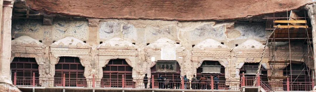 代表性窟龕主要有第4、9、12、15、22、26、27、141等窟,主要集中在東崖。仿殿堂式窟在這一時(shí)期達(dá)到頂峰,如東崖上部的第4窟,俗稱“上七佛閣”或“散花樓”,系大型廡殿頂,前廊后室、七間八柱式結(jié)構(gòu),面闊30.48米、進(jìn)深8.00米、通高16.00米,平棋、斗栱、額枋、瓦壟、正脊、鴟吻等建筑構(gòu)件一應(yīng)俱全。后室由七個(gè)裝飾華麗的帳形大龕組成,富麗堂皇。