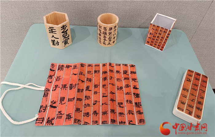 而在西北師范大學美術(shù)學院,簡牘則以文創(chuàng)的形式呈現(xiàn)美感,豐富著人們的生活。近日,由西北師范大學聯(lián)合甘肅簡牘博物館舉辦的“簡述中國 牘懂絲路”展覽正在展出,包含簡牘書法、文創(chuàng)成果兩部分。