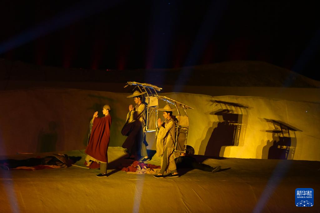 今年以來,脫胎于敦煌文化的洞窟沉浸式體驗(yàn)劇《樂動敦煌》、室內(nèi)情景體驗(yàn)劇《又見敦煌》、沙漠實(shí)景演出《敦煌盛典》和中國殘疾人藝術(shù)團(tuán)情景音畫劇《千手千眼》四場劇目在絲路名城甘肅敦煌同步上演,劇目將敦煌歷史底蘊(yùn)、服飾文化、樂舞文化等生動融合,為游客呈現(xiàn)出精彩絕倫的敦煌文化視覺盛宴,深受中外游客喜愛。截至8月10日,四大劇目今年已累計演出1175場次,觀看游客突破66萬人次。其中,《敦煌盛典》以敦煌鳴沙山月牙泉為背景,將沙漠景觀與現(xiàn)代舞美結(jié)合,將墻體燈光融入實(shí)景演出,講述了一段發(fā)生在古絲綢之路重鎮(zhèn)敦煌的愛情故事,展示了敦煌的歷史文化及人文風(fēng)貌。