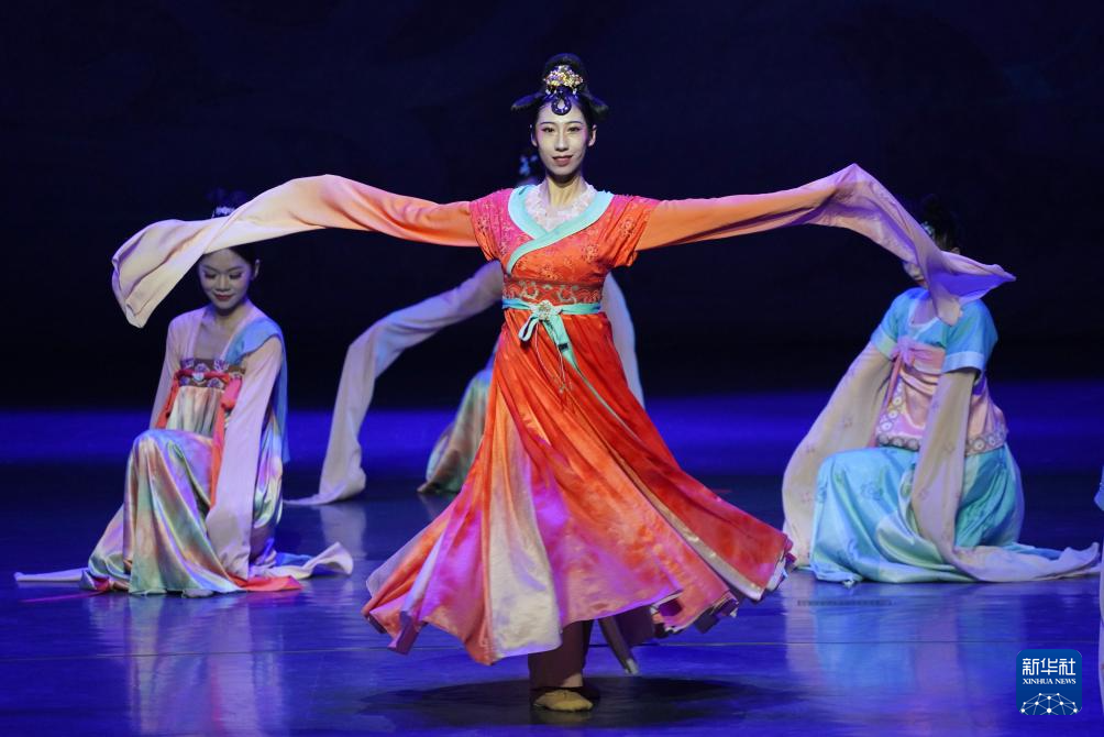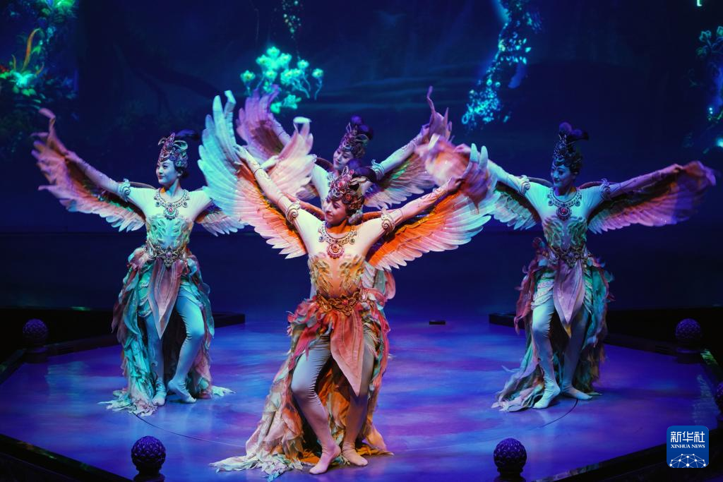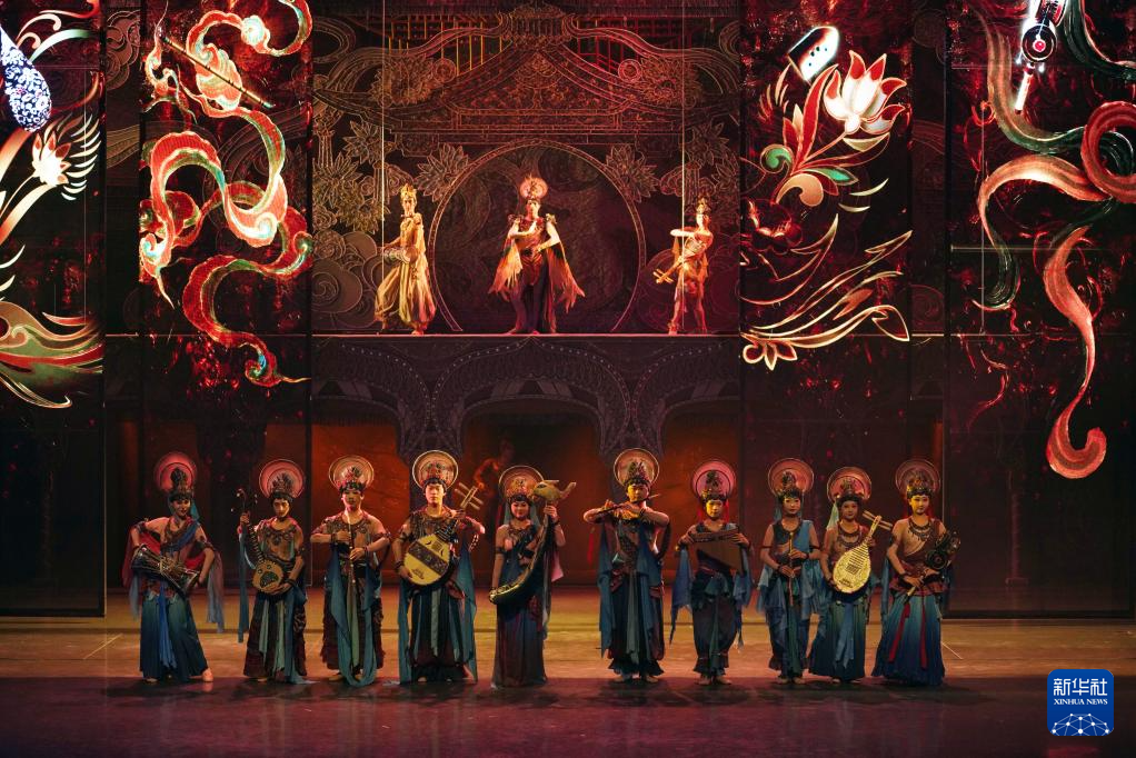 8月9日,演員在《樂動敦煌》中表演。新華社記者 馬寧 攝