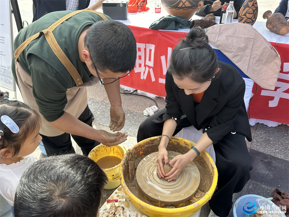 當日的活動中,蘭州職業(yè)技術(shù)學院非物質(zhì)文化遺產(chǎn)學院的師生現(xiàn)場展示蘭州刻葫蘆、慶陽剪紙、木版年畫、甘南藏族唐卡、泥板畫、甘肅彩陶、掐絲琺瑯畫等非遺技藝,吸引了很多市民見此情景駐足觀看。其中甘肅彩陶展示尤為引人注目,不少市民上手體驗,在學院同學的幫助下體驗非遺文化。市民張女士說:“這是我第一次體驗制作甘肅彩陶,讓人印象非常深刻,了解了古人是如何制作彩陶的,也讓我'沉浸式'感受到非遺文化的魅力。”