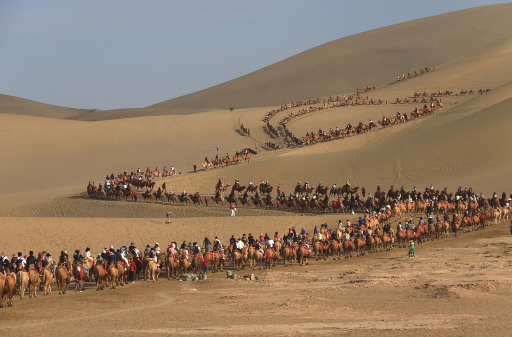 雄奇絲路攬勝景,悠長假期釋放長線出游需求。蘭州、敦煌、張掖、天水、平?jīng)龅榷鄠€絲路沿線旅游目的地迎來跨省游客“井噴式”增長,張掖七彩丹霞景區(qū)共接待游客17.85萬人次,省外游客占比超八成。“我們接待團隊340個游客5000多人次,超過2019年同期一倍以上。”甘肅蘭神國際旅行社董事長裴建宏說,今年“絲路游”熱度超乎想象,親子游、研學(xué)游、定制游……所有“賽道”皆有驚喜。