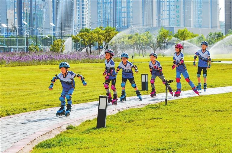 張掖奧林匹克森林公園成為市民健身休閑的好去處。新甘肅·甘肅日?qǐng)?bào)通訊員 王將