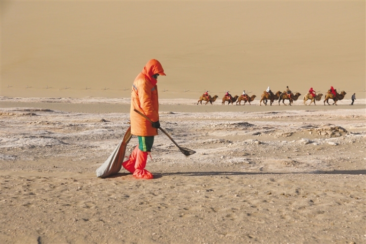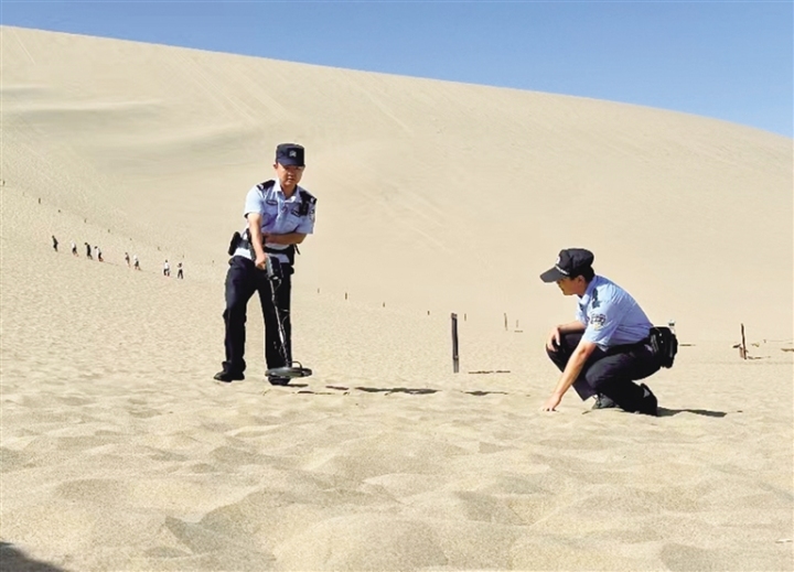 在鳴沙山·月牙泉景區(qū),負責執(zhí)勤的景區(qū)派出所民警,不僅維護景區(qū)及周邊的治安,也為游客提供熱心周到的服務(wù),僅在沙漠中為游客尋找的手機每年就有100余部,尋找返還隨身物品200余件,用“5A”警務(wù)服務(wù)5A景區(qū)。