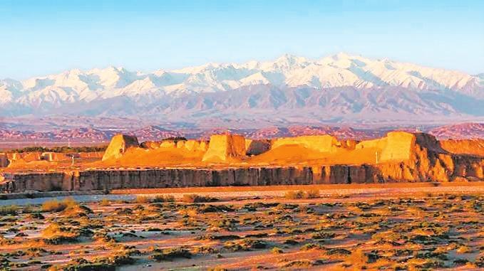望南山,祁連山頂白雪皚皚;城前,榆木山下草場豐茂。當(dāng)年牛、羊、馬、駱駝成群,生活在這里的人們過著無憂無慮富足的生活。但一千年后,駱駝城已是一座廢城,物是人非。只有高大的城墻和殘垣斷壁說明它曾存在過,也輝煌過。