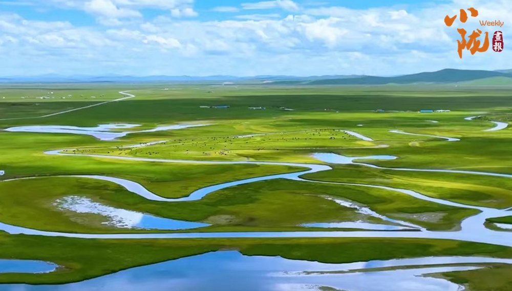 條條溪流蜿蜒縱橫,濕地沼澤星羅棋布,有牛羊信步,俊鷹翱翔,藍(lán)天白云綠地,寬廣遼闊,一望無際。