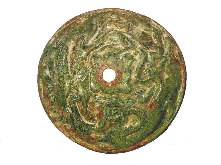 綠釉浮雕龍虎紋器物座
