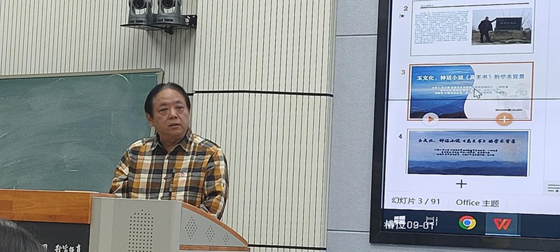 馮玉雷一直認認真真,埋頭干事。他心中有一個非常宏大的目標,向著這個目標行進過程中,腳踏實地。前幾年他在西北師范大學首開公選課《中國玉文化》,把玉文化作為專門的一門課來講,具有開拓性。玉文化作為一門學科,在全國各大高校此前還沒有先例,馮玉雷先生做了一件非常有意義的事情。這次講座對我非常有啟發(fā)。從這門課的內涵來講,其實又是一個延續(xù):對傳統(tǒng)文化也好,考古文化也好,對甘肅省乃至整個中華大地,從玉文化開始出現(xiàn),發(fā)展到現(xiàn)在,就是一種延續(xù)。玉和玉器至堅至柔,至圣至潔,卻默默無言,但是它們告訴了我們很多以前不知道或者沒有意識到的信息,從重見天光的那一刻起,有無數(shù)信息在源源不斷的釋放,就看人們如何理解,如何解讀。如果不研究、發(fā)現(xiàn)這些玉器的內涵,那還是相當于某種意義上的沉睡。馮玉雷創(chuàng)作小說,研究玉文化,還組織十幾次考察活動,國內的有些大家都參與,這像不像流動的學術討論會?他的長篇小說《禹王書》出版剛剛一個月,據(jù)我所知,“玉文化、神話小說《禹王書》的學術背景”講座是首次分享,他把研究成果、創(chuàng)作成果第一時間通過課堂與同學們分享,我仿佛看到他帶著學生勇往直前,義無反顧地向前走著,這本身就是玉文化精神的傳承和發(fā)揚!我感覺到馮玉雷《禹王書》的思緒上下翻飛,縱橫馳騁,騰躍五千年。小說中有非常核心的價值內涵,就是玉文化本身所具有的、深深進入到我們民族根脈中的文化內涵,同時,又有就是對文學的一種激發(fā)。小說中的神話人物以及他們之間的交流、故事、語言,還有那些玉器,都非常神奇??梢灶A想,這本書的后延性非常長遠,希望玉文化班的同學能夠在馮玉雷老師帶領下,傳承發(fā)揚玉文化,完成從璞玉到玉器的轉化!