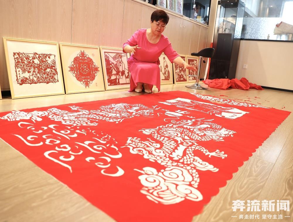 一把小巧的剪刀、一件裁好的紅布,折線與剪線交錯,刀鋒沙沙在紅布上游走……為獻禮2024(甲辰)年公祭中華人文始祖伏羲大典,天水市秦州區(qū)區(qū)級玉雕技藝非遺傳承人、剪紙傳承人尹麗珺,歷時半個月制作完成了長2.5米、寬1.5米的大型“龍鳳呈祥”龍圖漢服剪紙服裝,“這是一份獻禮,也是對伏羲文化的另一種傳承。”