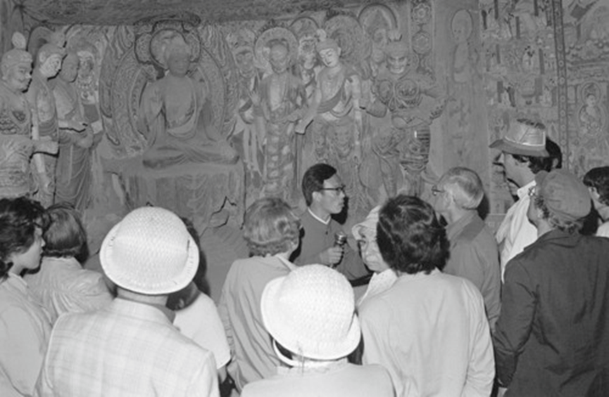 舉世聞名的文化寶庫和藝術明珠——敦煌莫高窟吸引了亞、歐、美三大洲的旅游者。新華社記者李生才攝(1986年5月18日發(fā))