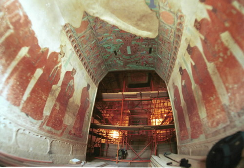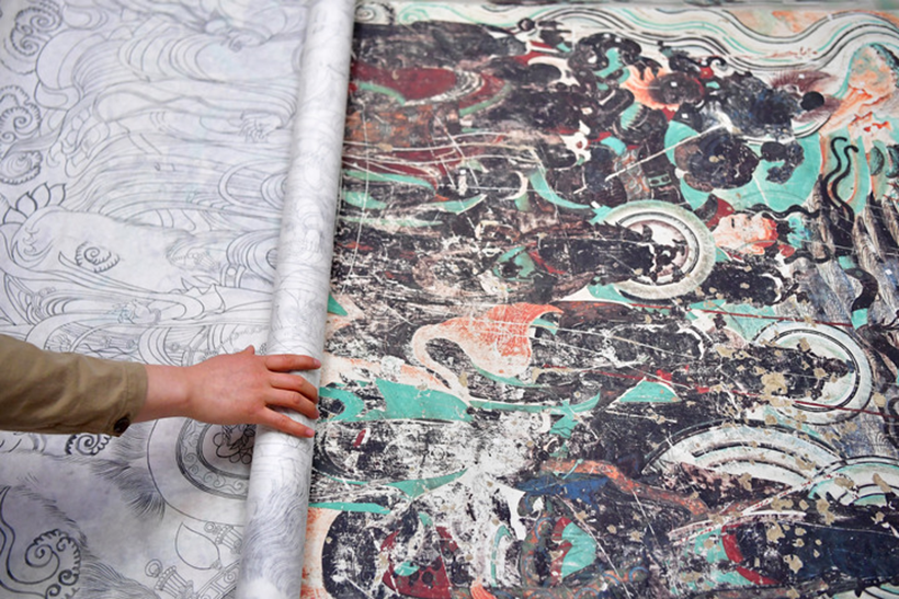 1989年年初,中國敦煌莫高窟465號窟內(nèi)的五處元代壁畫被盜。破案后,敦煌研究院立即組織有關專家將這些支離破碎的壁畫拼接粘合,以高超的技藝復原,然后按照圖片檔案資料進行描繪,使它們基本上恢復了被盜之前的本來面貌。