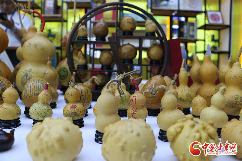 走進(jìn)第三十屆蘭洽會(huì)非遺文創(chuàng)館,陳氏雕刻葫蘆的第二代傳人陳兵正在展臺(tái)前為駐足參觀的群眾講解著刻葫蘆的過(guò)程。