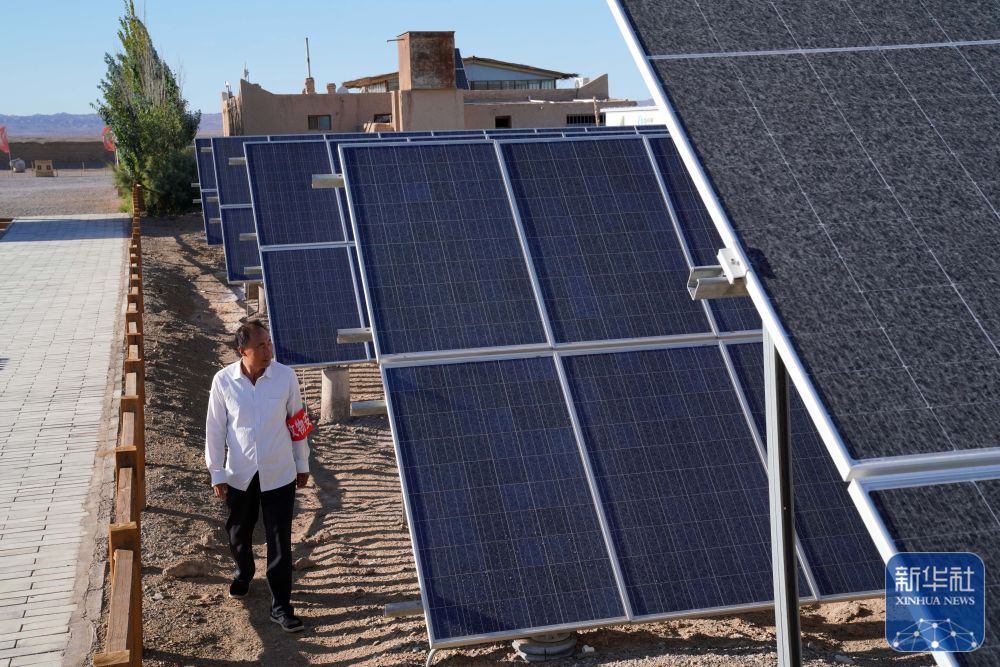 ↑7月16日,張吉全檢查屋后的太陽(yáng)能電池板。