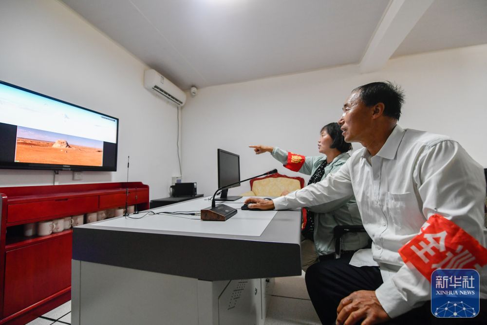 ↑7月16日,張吉全和妻子聞春瑜通過(guò)監(jiān)控巡查漢長(zhǎng)城遺址。