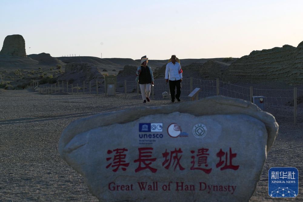 玉門(mén)關(guān)外,大漠戈壁,漢長(zhǎng)城遺址巍然屹立,訴說(shuō)著歷史上的邊塞風(fēng)云和絲路滄桑。
