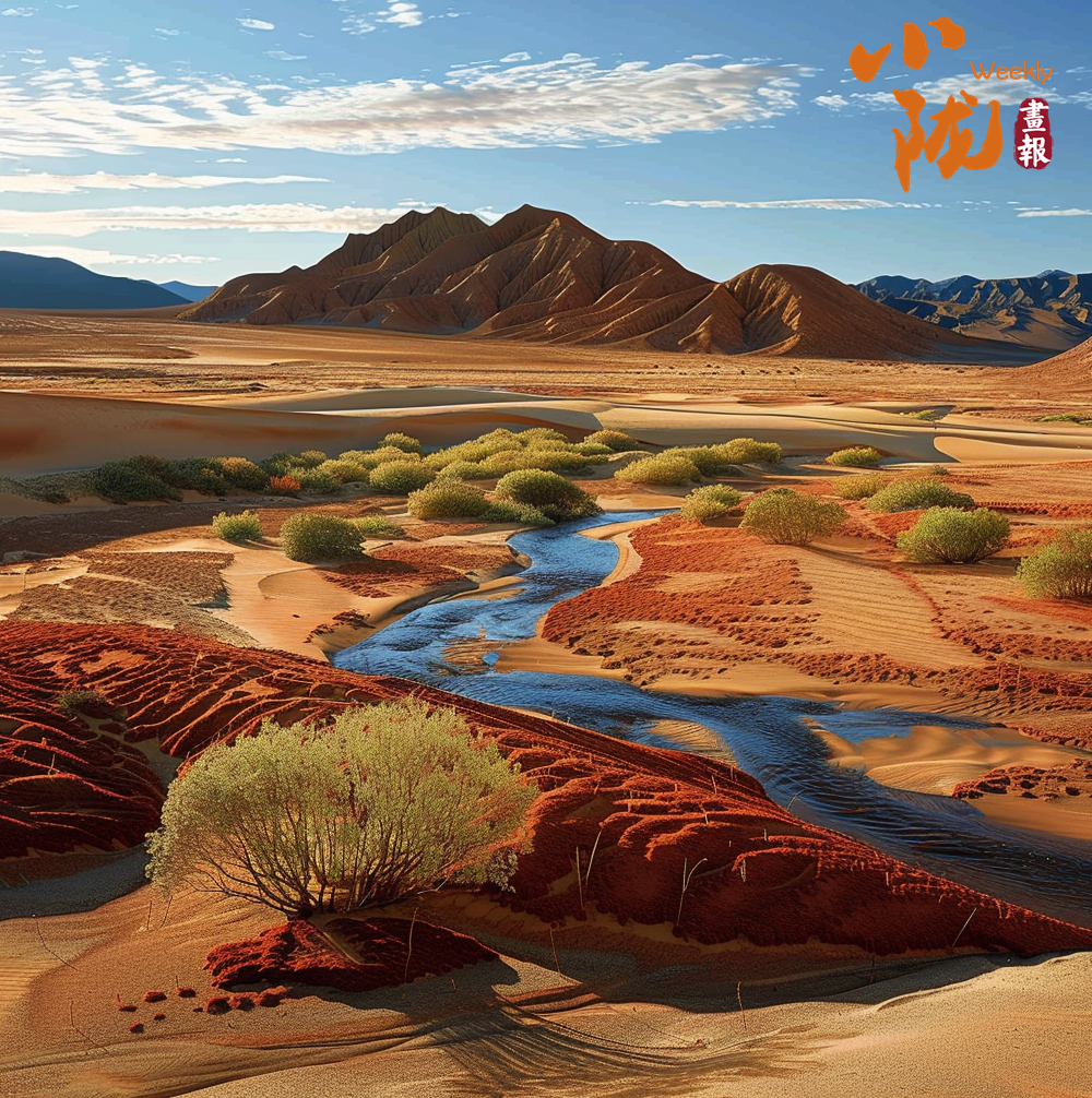 一叢叢紅柳宛如流動的彩云,在這蒼茫的戈壁灘上盡情綻放。這種看似平凡卻又充滿生命力的植物,與藍(lán)天白云相映,與沙丘中一蓬蓬的綠色為伍,為這粗狂的戈壁帶來了無限生機。